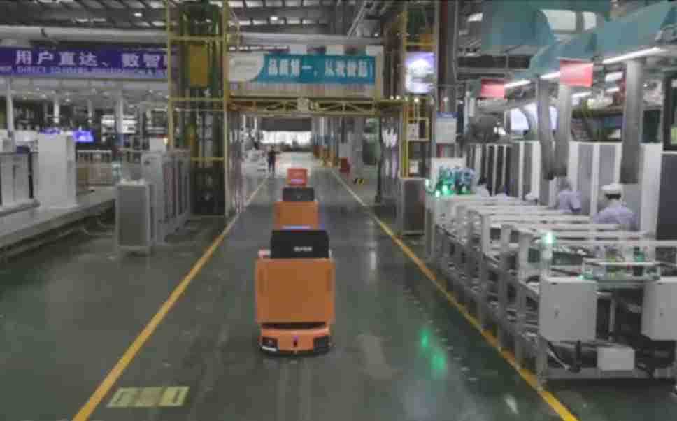 为车载冰箱物流配送打造的智能解决方案,,,,包含产中物流通过潜伏举升AMR搬运至线边,,,,产后成品物流智能仓储,,流程包含产中物流智能齐套入库,,,,线边安灯叫料AMR智能配送至线边,,,成品入库、、、、出库,,,通过无人堆高车机器人,,智能仓储管理替代人工作业管理,,,实现更高存储、、、更高效率、、、、更具柔性化的解决方案。。。